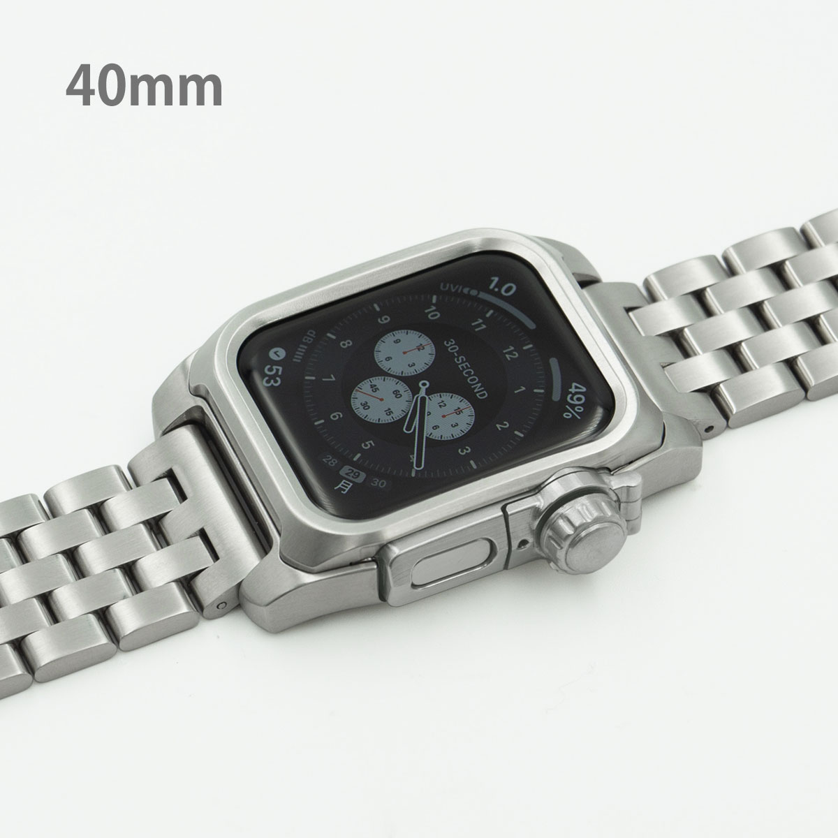 ■サージカルステンレス316L ・ステンレスバンド ・ネジ材質:ステンレススチール ・心電図App対応ボタンパーツ ※機器本体は付属しません Apple Watch SE Apple Watch Series 4 Apple Watch Series 5 Apple Watch Series 6 40mm専用モデル EDITION(セラミックモデルは非対応)