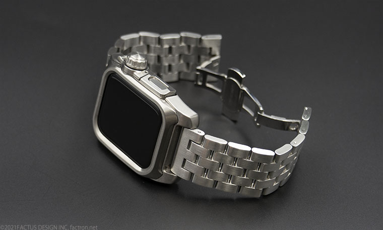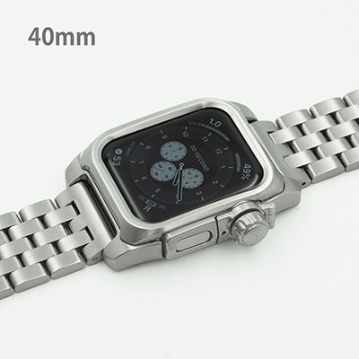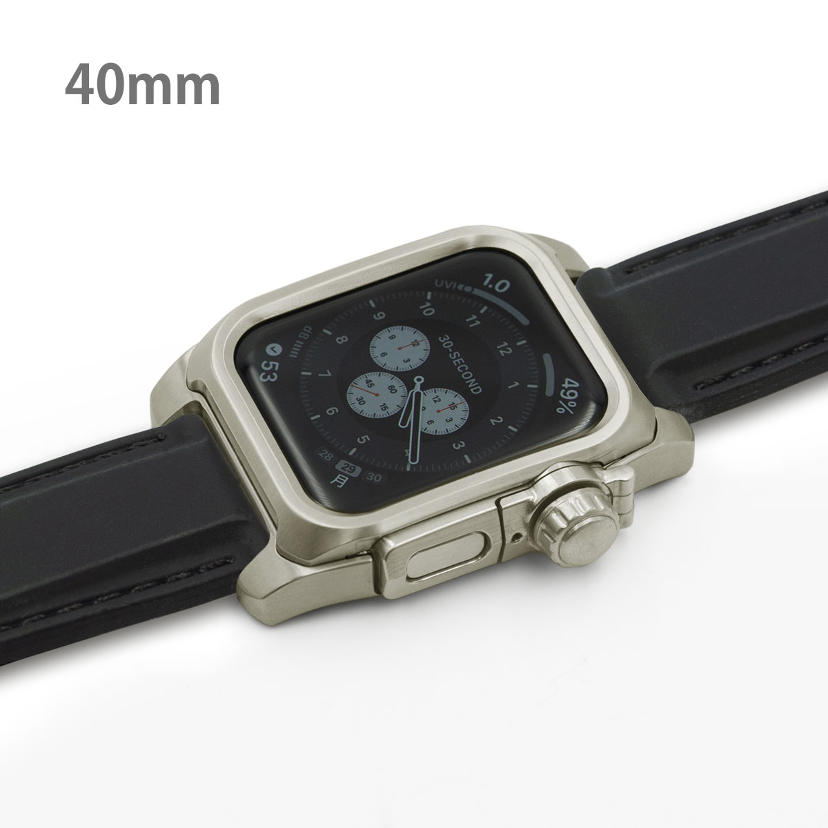 ■チタニウム削り出し ・シリコンラバーバンド ・観音開きバックル ・ネジ材質:ステンレススチール ・心電図App対応ボタンパーツ ※機器本体は付属しません Apple Watch SE Apple Watch Series 4 Apple Watch Series 5 Apple Watch Series 6 40mm専用モデル EDITION(セラミックモデルは非対応)