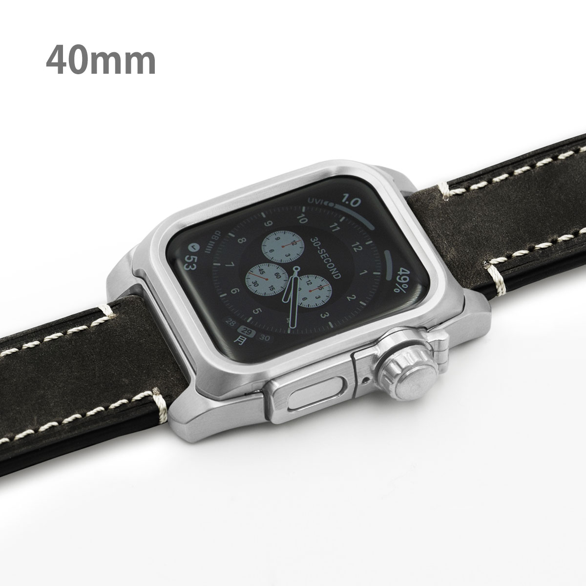 ■チタニウム削り出し エイジング処理されたつや消し(マット調)の厚手レザーバンド。 エイジング処理の関係で、バンドにキズがある場合がございます。 ・ブラックレザーバンド ・通常バックル ・ネジ材質:ステンレススチール ・心電図App対応ボタンパーツ ※機器本体は付属しません Apple Watch SE Apple Watch Series 4 Apple Watch Series 5 Apple Watch Series 6 40mm専用モデル EDITION(セラミックモデルは非対応)