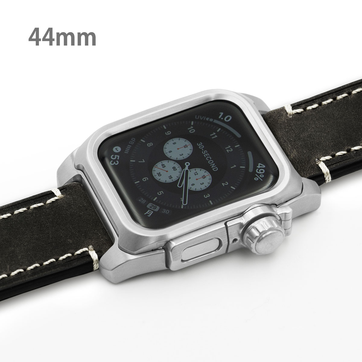 ■チタニウム削り出し エイジング処理されたつや消し(マット調)の厚手レザーバンド。 エイジング処理の関係で、バンドにキズがある場合がございます。 ・ブラックレザーバンド ・通常バックル ・ネジ材質:ステンレススチール ・心電図App対応ボタンパーツ ※機器本体は付属しません Apple Watch SE Apple Watch Series 4 Apple Watch Series 5 Apple Watch Series 6 44mm専用モデル EDITION(セラミックモデルは非対応)