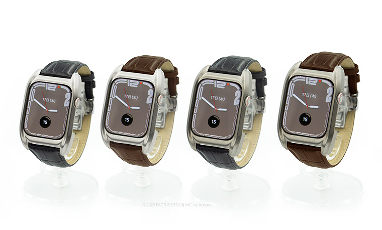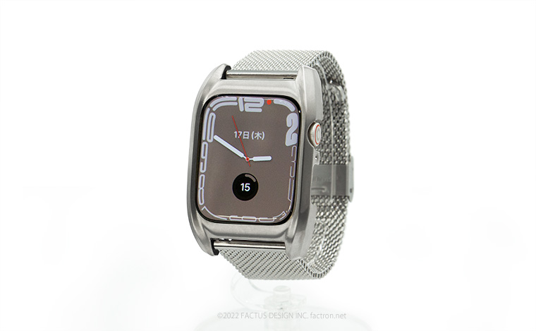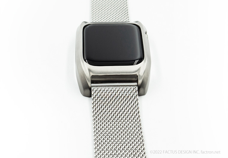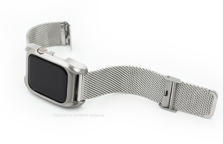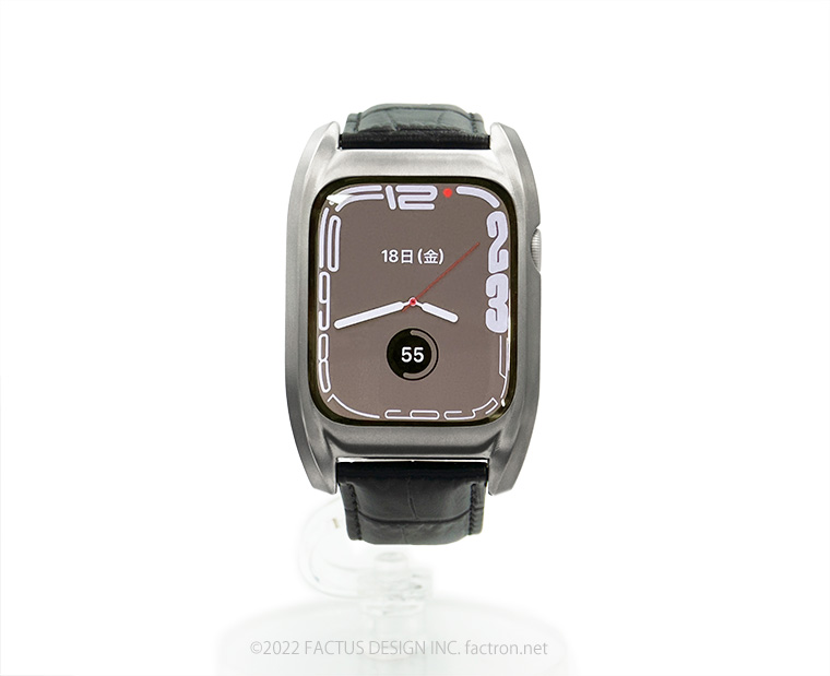 Apple Watch Series8 に対応いたしました。 Fair for AppleWatch7 Apple Watch Series7、 Series8 専用ジャケット(ケース) 45mmと41mm Apple Watchを個性的な ”腕時計” に変身させます。 ウォッチデザインが原点の ファクタスデザイン が生み出したブランド FACTRON だからできる オリジナルプロダクトです。 ラインナップにステンレスメッシュモデルを追加しました。