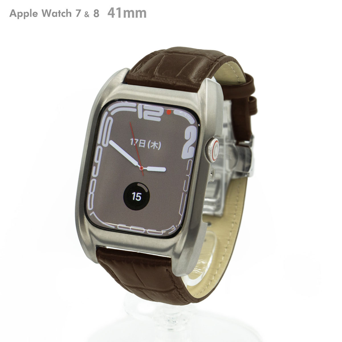 ■サージカルステンレス316L 削り出し ブラウンクロコ型押し(天然牛革)ベルト ※機器本体は付属しません。 ※クロコバンドのステッチは白になる場合があります。 Apple Watch Series7&8 41mm専用 それ以外の機種はご使用できません。
