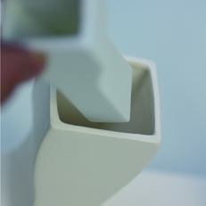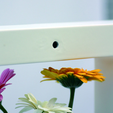 花を換えたり、水やりは、本体の中に磁器で焼いたインナーベースで行なうので、それを取り出すことで、本体を一度置いた場所や壁から移動させたり外すことなく簡単に行なうことができます。また、本体に直接水を入れないので、洗浄などのお手入れも簡単です。