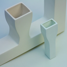 このシンプルでフラットなカタチは焼きものにした場合、極端なゆがみがや歪みがでたり、または亀裂が入ったりと製品化するには非常に難しく開発当初は大変難航しましたが、そこで、こういった難易度の高い焼きものを数多く手掛けている愛知県瀬戸市のメーカーさんとの出会いがあり、そちらの職人さんの卓越した加工技術と素材選びによって漸く製品化にこぎつけることができました。