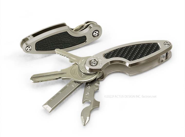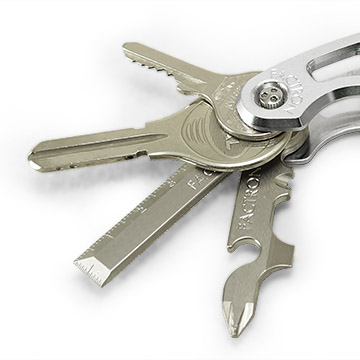純チタニウム削り出し。 4種の機能が付いたマルチツール。 鍵と一緒に組み込めます。