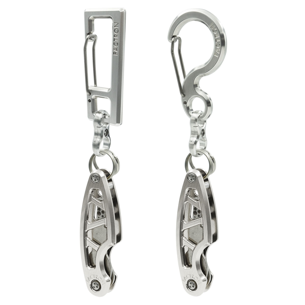 ・チタニウムカラビナK-07 ・キーオーガナイザー リーフ チタニウム 2点のお得なセットです。 キーオーガナイザー リーフの詳細はこちら どちらもチタニウム削り出し。 現在の納期はページ最上部をご覧ください