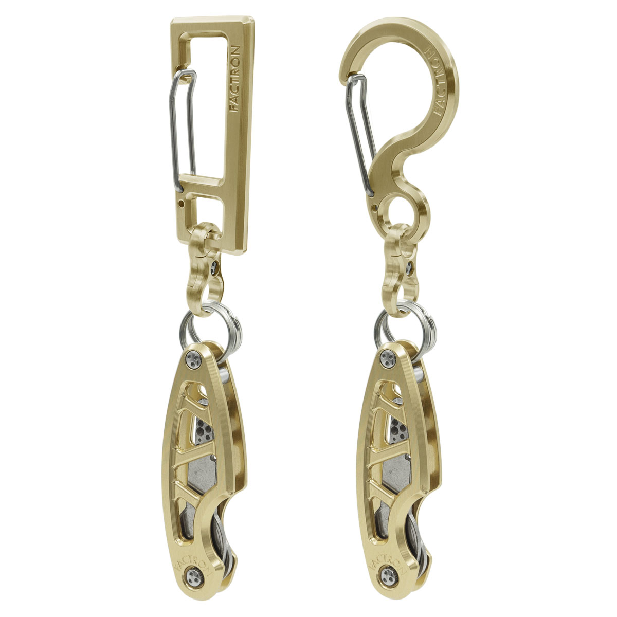 ・「!」もしくは「?」カラビナ ・キーオーガナイザー リーフ 真鍮(ブラス) 2点のお得なセットです。 メタル削り出しカラビナの詳細はこちら 真鍮削り出し。 ずっしりと存在感があり、経年での色合いの変化を楽しめる素材。 お届け時は、削り出してすぐの状態の金色。 使うほどに味のある色に変わっていきます。 無垢材から削り出し、輝きを大切に手仕上げで磨き上げました。 カラビナは三つ穴スペシャルネジ付きです。 現在の納期はページ最上部をご覧ください