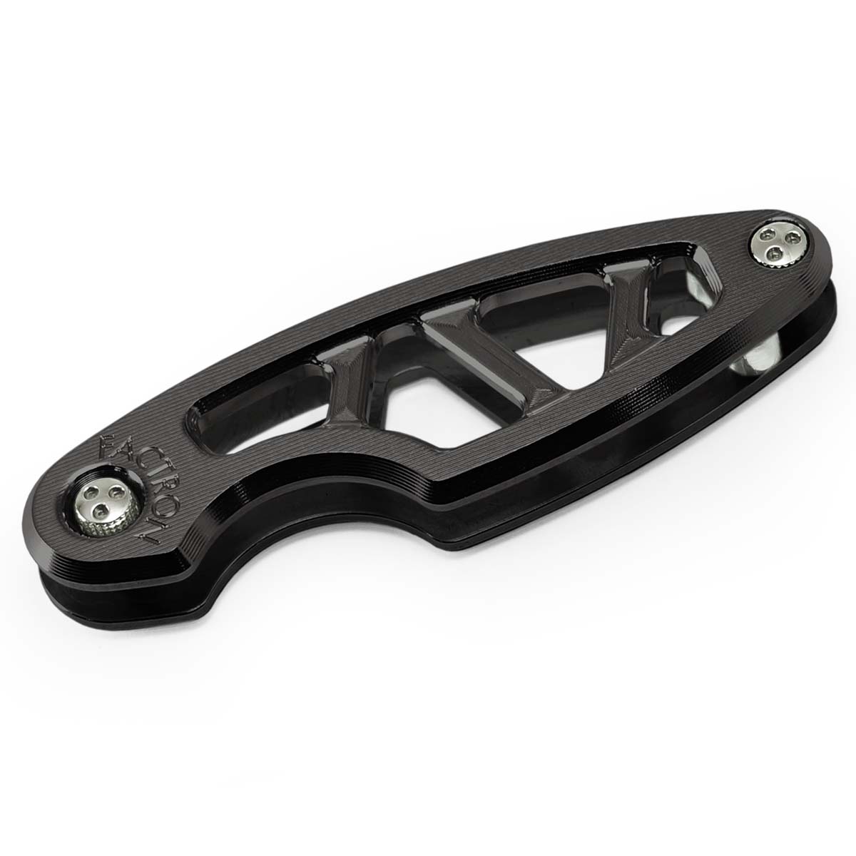 ジュラルミンA2017削り出し。 ブラックのアルマイト加工。 長さ:約86.5mm×幅:約29mm 厚み:約13mm(鍵を組み込まない状態で) オーダーメイド 現在の納期はページ最上部をご覧ください