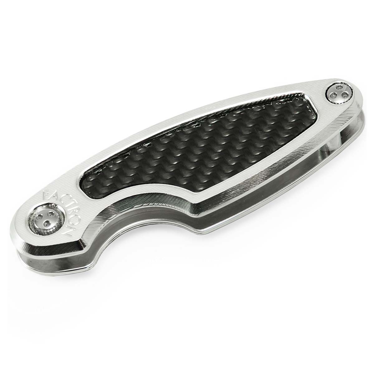ジュラルミンA2017削り出し。 リアルブラックカーボン貼り合わせ。 長さ:約86.5mm×幅:約29mm 厚み:約13mm(鍵を組み込まない状態で)