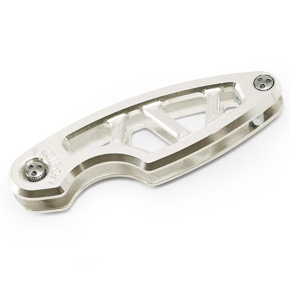 ・「!」もしくは「?」カラビナ ・キーオーガナイザー リーフ チタニウム 2点のお得なセットです。 メタル削り出しカラビナの詳細はこちら チタニウム削り出し。 加工の難易度が非常に高く強固で軽量。サビに強くアレルギーも少ない素材。医療用にも使われます。 無垢材から削り出し、輝きを大切に手仕上げで磨き上げました。 カラビナは三つ穴スペシャルネジ付きです。 現在の納期はページ最上部をご覧ください