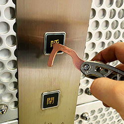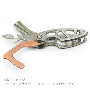 殺菌作用がある純銅削り出し。 手で直接触れずにボタンや取手などに触ることができます。 鍵と一緒に組み込めます。 ※銅イオンの力を出すため表面処理していません。 ご使用の状況で変色します。 オーダーメイド このツール単体ではお使いいただけません。 キーオーガナイザー リーフ(別売り)に取り付けるオプションパーツです。 オンラインショップ販売価格 3,000円(税別) ※販売終了しました