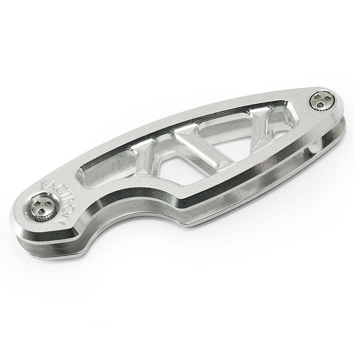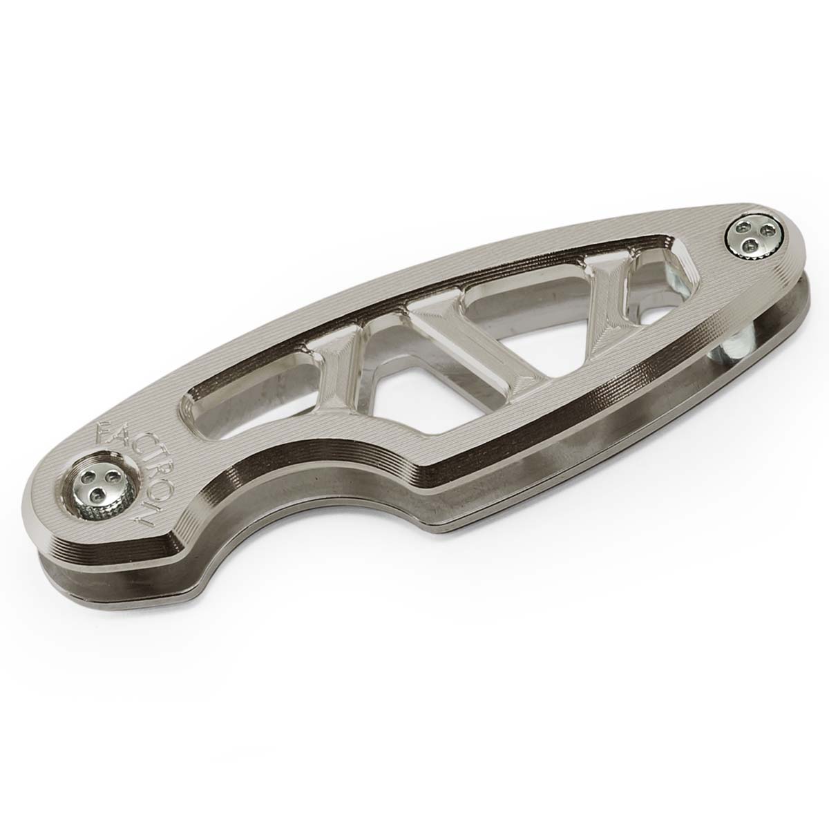ジュラルミンA2017削り出し。 丁寧に手磨き。 長さ:約86.5mm×幅:約23mm 厚み:約13mm(鍵を組み込まない状態で)