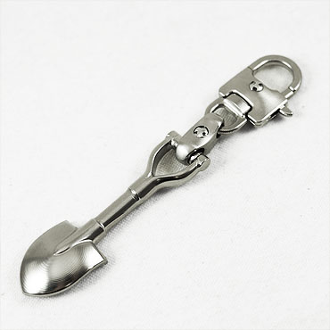 ショベル・キーチェーン金具、全てチタニウム無垢材からの削り出しです。 チタンだから、軽く 頑丈で 錆びません。 こちらの製品も100年品質です。 もちろん、金魚のエサ用スプーンとしても活躍します。