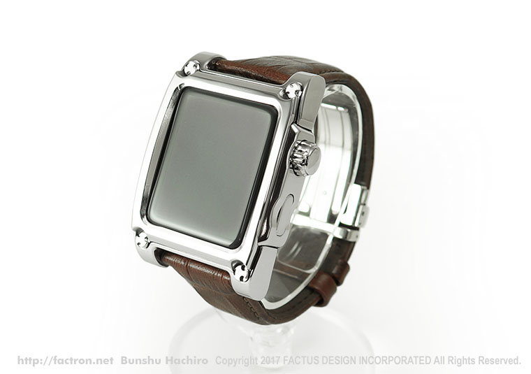 ウォッチメーカーで長年チーフデザイナーとして多数の腕時計をデザインし、 国内外の数々の高級腕時計に深くかかわってきた FACTRONのデザイナー、ハチロブンシュウが 細部までこだわりぬきました。 ミクロン単位でまとめあげるウォッチデザインを 知り尽くしているからこその、このデザインです。