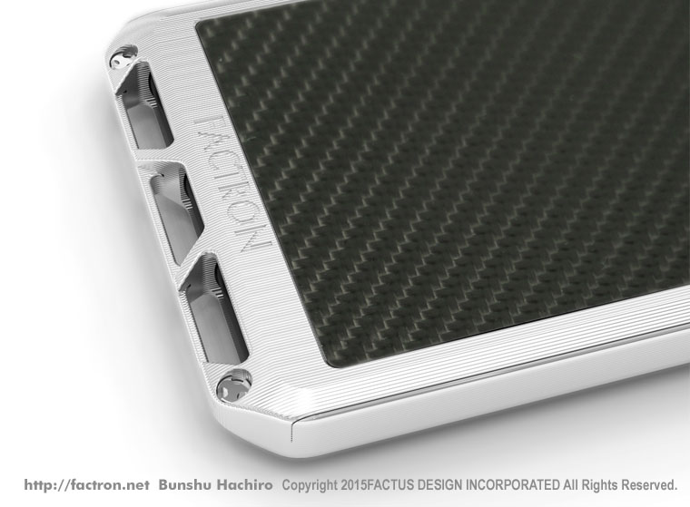 シルバーのリアルカーボンファイバーシートのバックパネル。 ボタンパーツはシャンパンゴールドのツートン仕様です。 |
