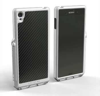 シルバーのリアルカーボンファイバーシートのバックパネル。 ボタンパーツはブラック。 |