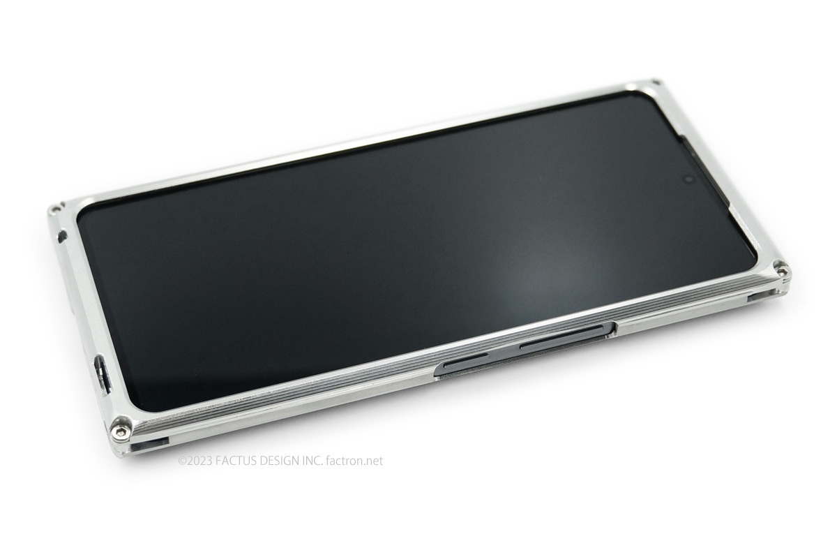 ■ご注意■ ・マイクロSDカードのスロット(携帯端末本体上部)は塞いでいますので、カード出し入れする際は携帯端末をジャケットから外す必要があります。 ・金属の剛性により横から見たときに隙間ができる場合があります。 ■素材:ジュラルミンA2017/A2024(アルミ合金) ■ネジ素材:ステンレススチール ■同梱品:専用ドライバー・取扱説明書