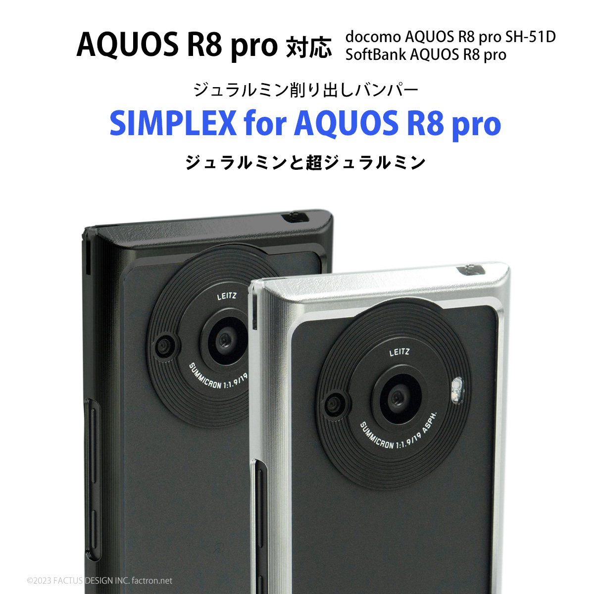 docomo AQUOS R8 pro SH-51D SoftBank AQUOS R8 pro 2機種対応のジュラルミン削り出しバンパー