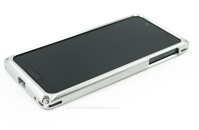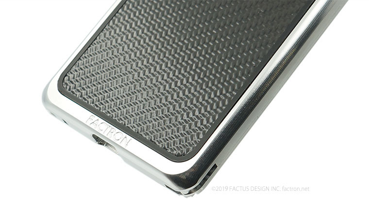 アルミの中でも最高強度のジュラルミンジャケットと 機器本体が接触しない、FACTRON独自のフローティング構造。 本体を厚く深くはさみ込むバンパー部分が液晶面を保護します。