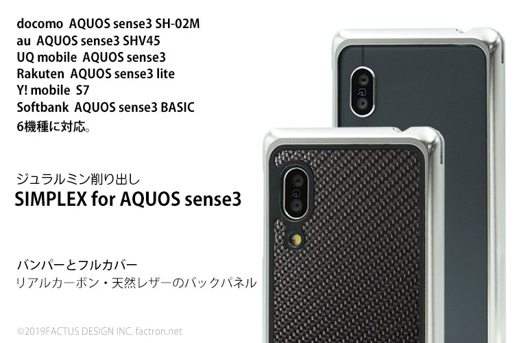SIMPLEX for AQUOS sense3 docomo AQUOS sense3 SH-02M au AQUOS sense3 SHV45 UQ mobile AQUOS sense3 Rakuten AQUOS sense3 lite Y! mobile S7 Softbank AQUOS sense3 BASIC 6機種対応のジュラルミン削り出しジャケット。 AQUOS のためのハイクオリティデザインです。 一枚のジュラルミンの無垢材から時間をかけ 一つ一つ削り出し、手作りで仕上げるこだわりのフォルムは、 所有する価値を高めてくれます。
