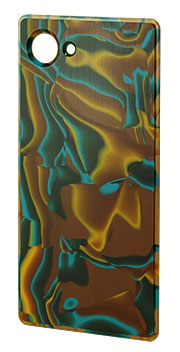 ジュラルミンの輝きを大切に手仕上げで磨き上げました。オプションでサビやキズに強くなる「透明アルマイト」もお選びいただけます。 高級メガネフレームに使われるアセテートのバックパネル。 ※柄は製品により異なります。