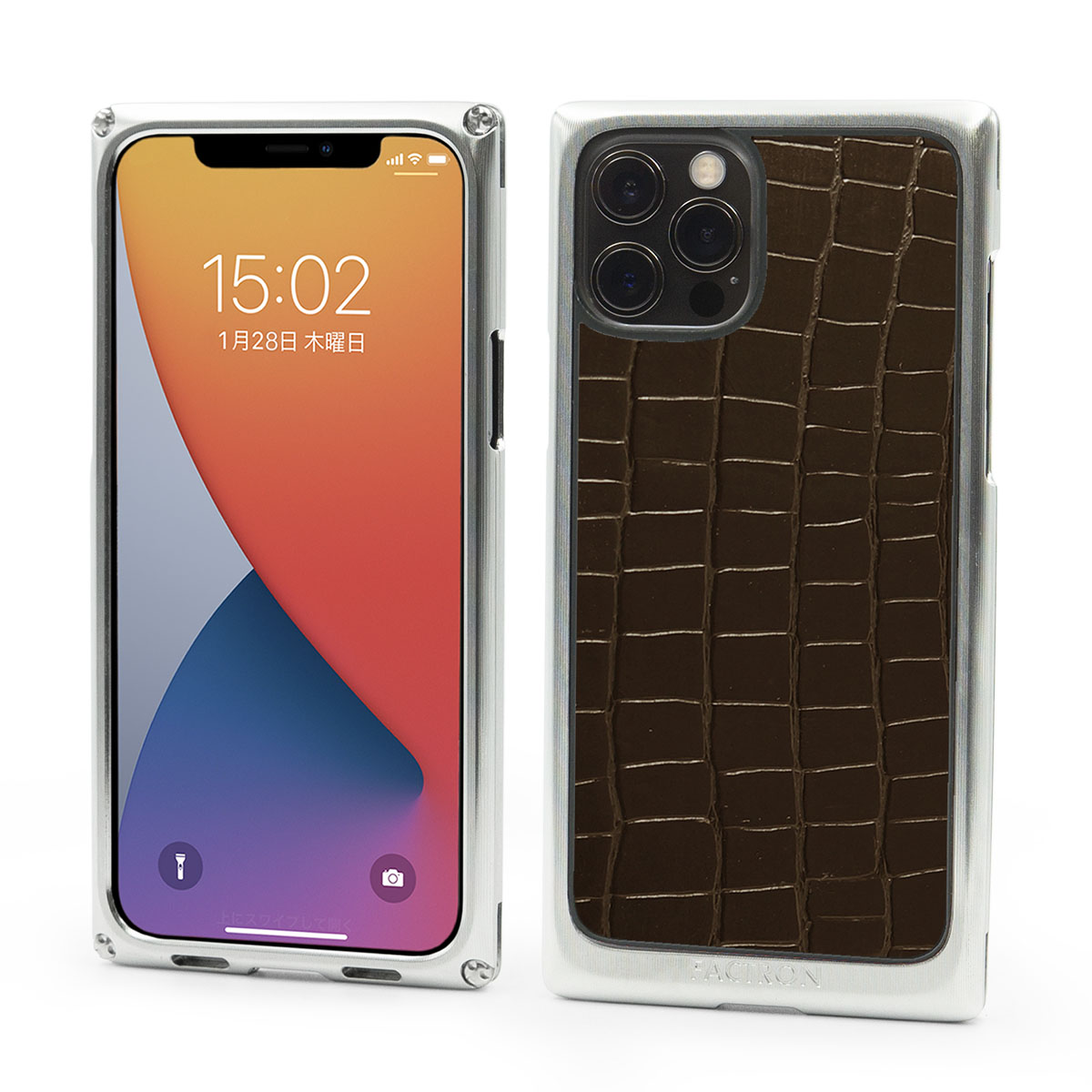 ジュラルミンの輝きを大切に手仕上げで磨き上げた「ジュラルミン素地」、オプションでサビやキズに強くなる「透明アルマイト」も選択可能。(若干白っぽくなる場合があります) 上品なツヤのダークブラウンクロコ型押し(天然牛革)のバックパネル。 ご注文前にページ下部の注意書きをよくお読みください 同梱品:取扱説明書 専用ドライバー