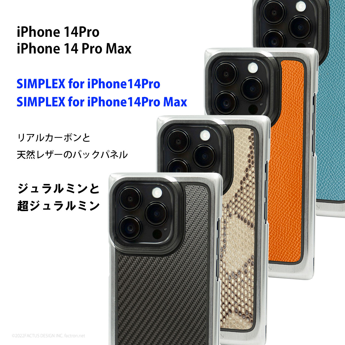 SIMPLEX for iPhone14Pro SIMPLEX for iPhone14Pro Max iPhone 14Pro と iPhone 14Pro Max専用 ジュラルミン削り出しジャケット シンプルな中にも自己主張するデザイン。 一枚のジュラルミンの無垢材から時間をかけ 一つ一つ削り出し、手作りで仕上げるこだわりのフォルムは、 所有する価値を高めてくれます。