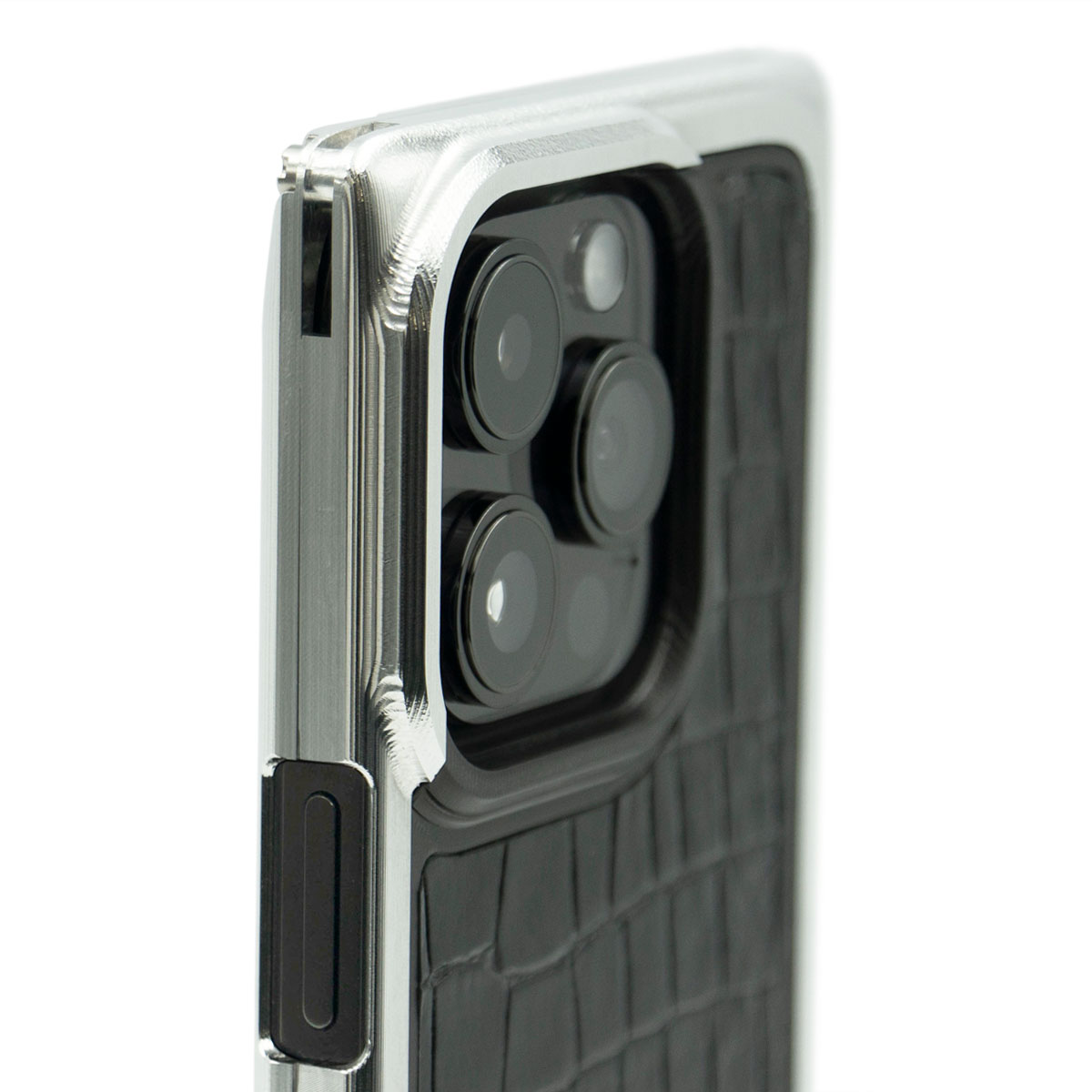 ジュラルミンの輝きを大切に手仕上げで磨き上げた「ジュラルミン素地」、オプションでサビやキズに強くなる「透明アルマイト」も選択可能。(若干白っぽくなる場合があります) 上品なツヤのブラッククロコ型押し(天然牛革)のバックパネル。 ご注文前にページ下部の注意書きをよくお読みください 同梱品:取扱説明書 専用ドライバー