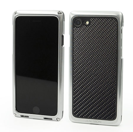 ジュラルミンの輝きを大切に手仕上げで磨き上げた「ジュラルミン素地」、オプションでサビやキズに強くなる「透明アルマイト」も選択可能。(若干白っぽくなる場合があります) 詳しくはこちらをお読みください。 リアルカーボンファイバーのバックパネル。