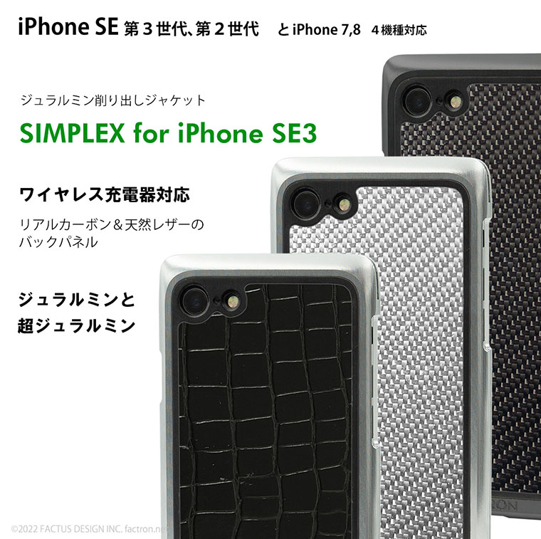 SIMPLEX for iPhone SE3 iPhone SE 第3世代、第2世代 と iPhone 7,8 専用 ジュラルミン削り出しジャケット シンプルな中にも自己主張するデザイン。 一枚のジュラルミンの無垢材から時間をかけ 一つ一つ削り出し、手作りで仕上げるこだわりのフォルムは、 所有する価値を高めてくれます。