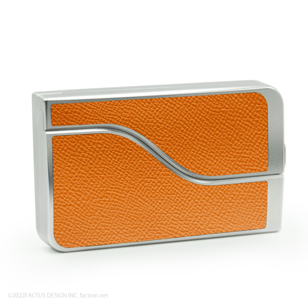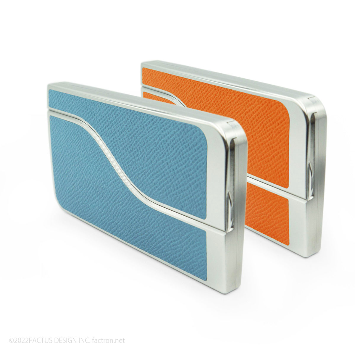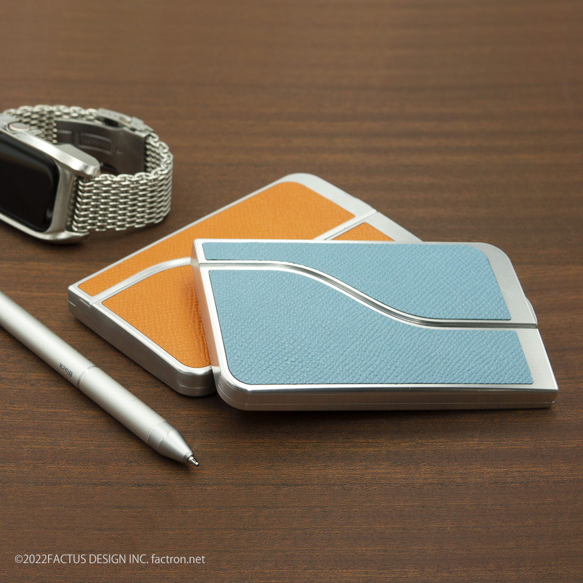 FACTRONオリジナル カードケース 名刺入れ Sunny 鮮やかなレザーとジュラルミンの削り出しの名刺ケースです。