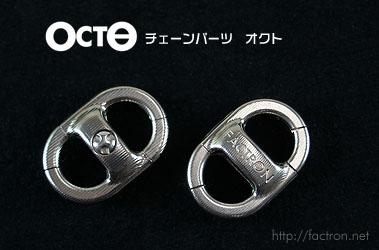 チェーンを構成するパーツ「OCTO」ですがこれもまた今までにない独特の構造で1パーツが2個の部品の組合せになっており、長さをいつでも調整することができます。