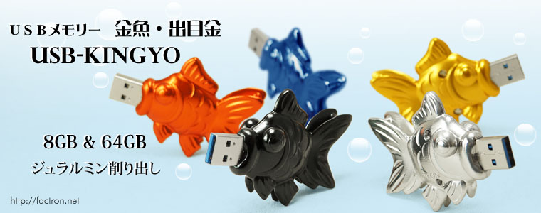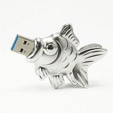 USB-KINGYO ジュラルミン削り出しの金魚型USBメモリー。