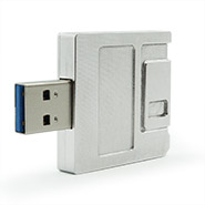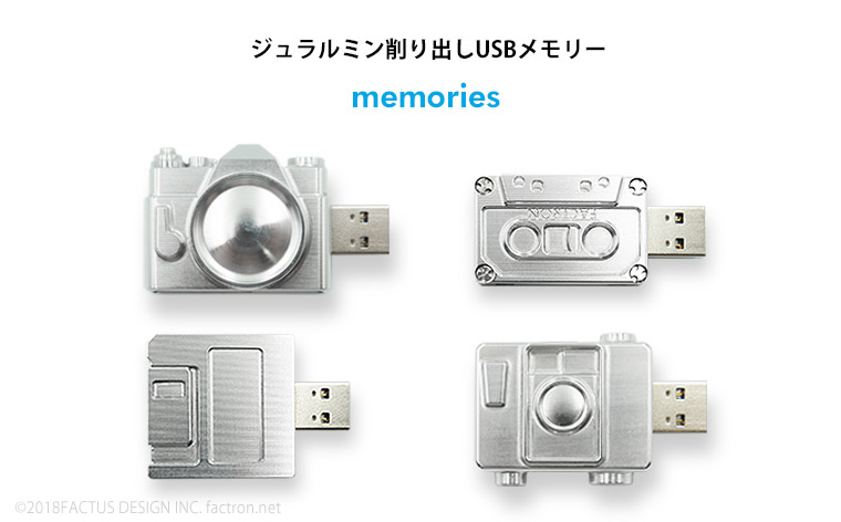 どこにもない新しい存在感のUSBメモリー。 大人だけがわかる、少し懐かしい記憶媒体がモチーフです。 航空機にも使われるジュラルミンA2017削り出し。 手の中にすっぽり収まるミニサイズ。