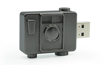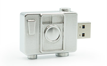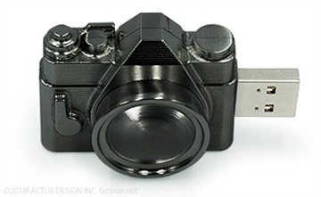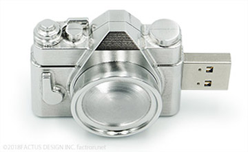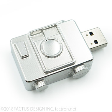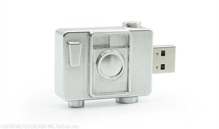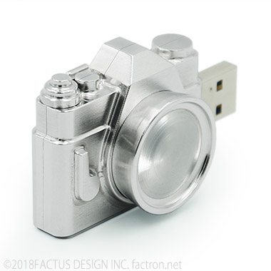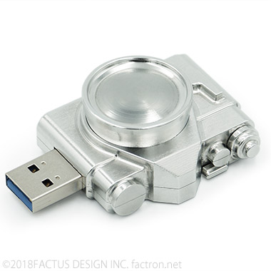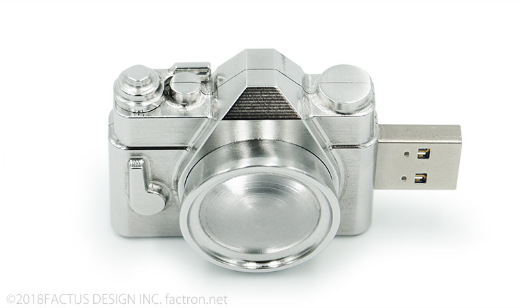 クラシックなフィルム式一眼レフがモチーフのUSBメモリー。 ジュラルミンA2017削り出し。 丁寧にハンドポリッシュで磨き上げました。