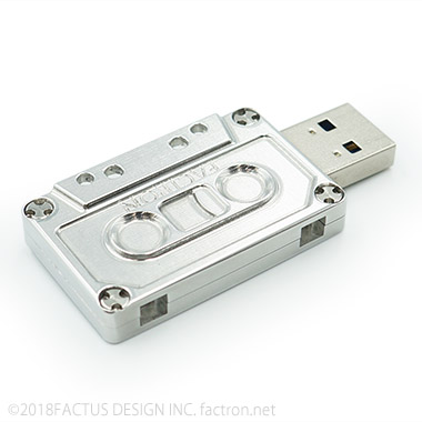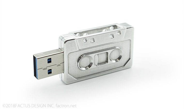 カセットテープがモチーフのUSBメモリー。 ジュラルミンA2017削り出し。 丁寧にハンドポリッシュで磨き上げました。