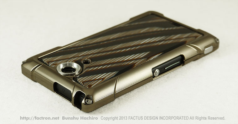 ジャケットの素材は、航空機等でも使用されるジュラルミンA2017(アルミ合金)を使用。金属の光沢感を最大限に引き出すよう に、ひとつひとつ手仕上げで磨き上げました。