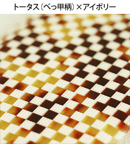 透明感と立体感のあるべっ甲柄とアイボリー柄のチェッカー模様です。