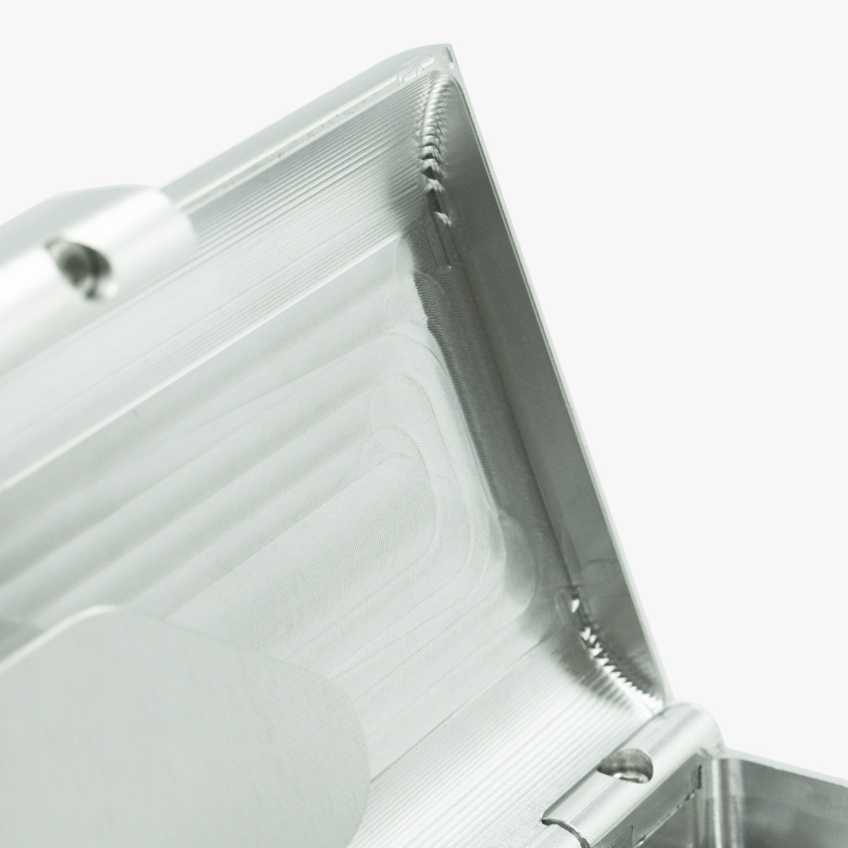 出し入れしやすいように内部の角をなくし、滑らせやすい緩やかなスロープ状のデザイン。削り出し加工ならではの形状です。