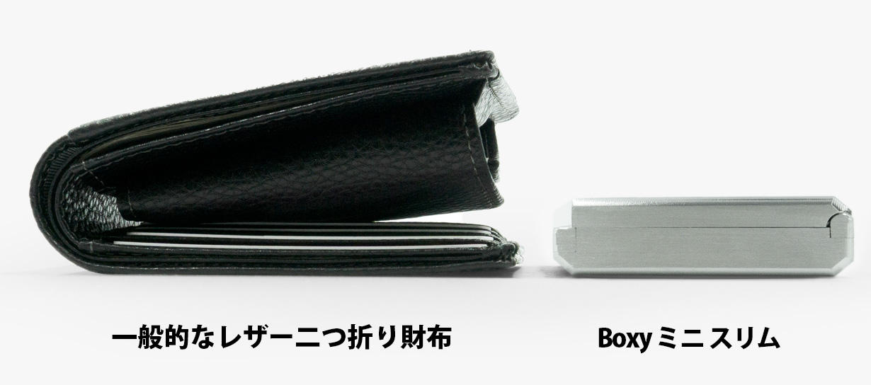 『メタルウォレット Boxy』『メタルウォレット Boxyロング』のカードサイズバージョン。