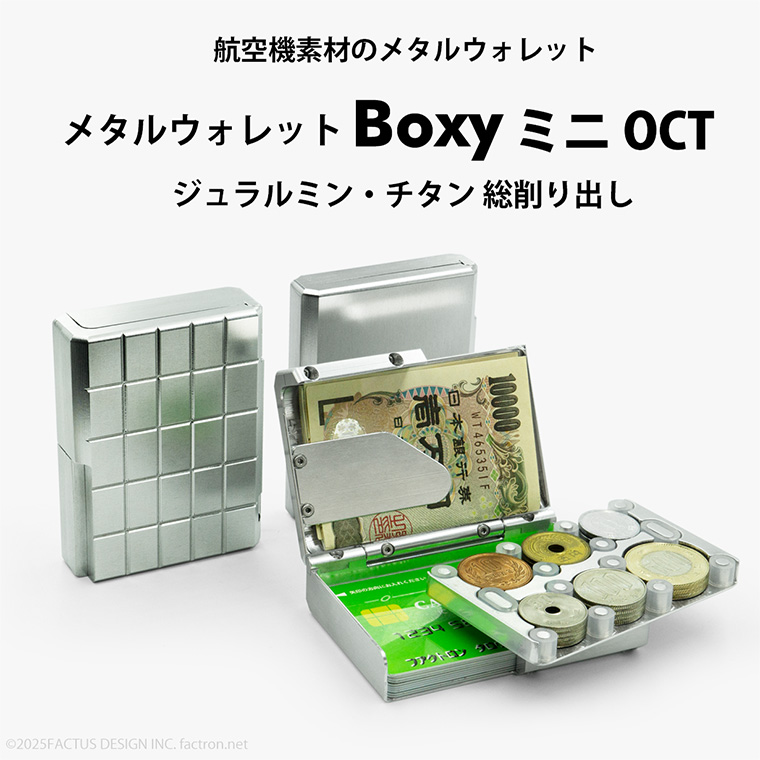 FACTRONオリジナル メタルウォレット BoxyミニOCT キャッシュレス時代の超コンパクトな金属製のお財布です。