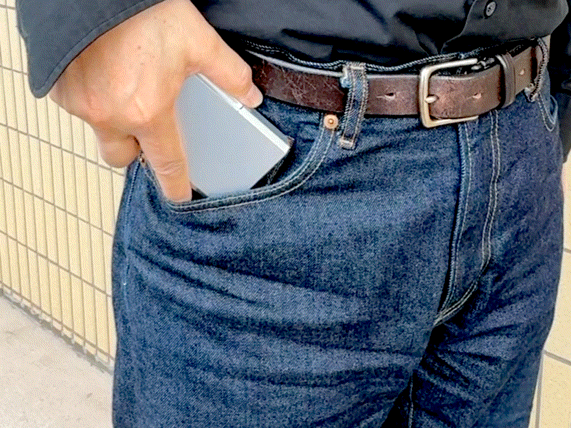 ミニもミニスリムも、ボトムやシャツのポケットにもスルッと入るコンパクトさ