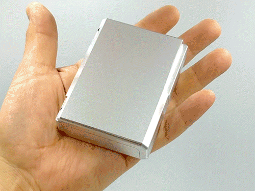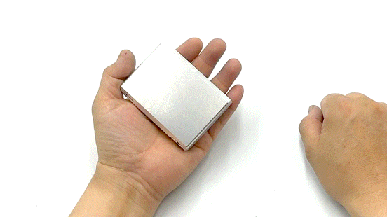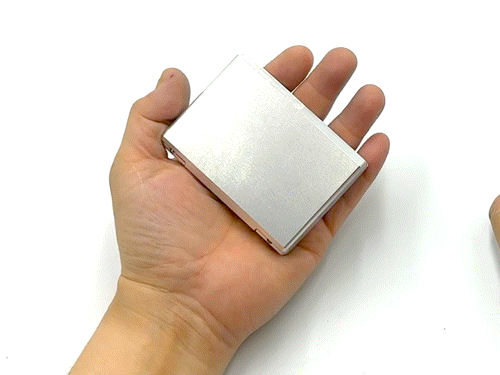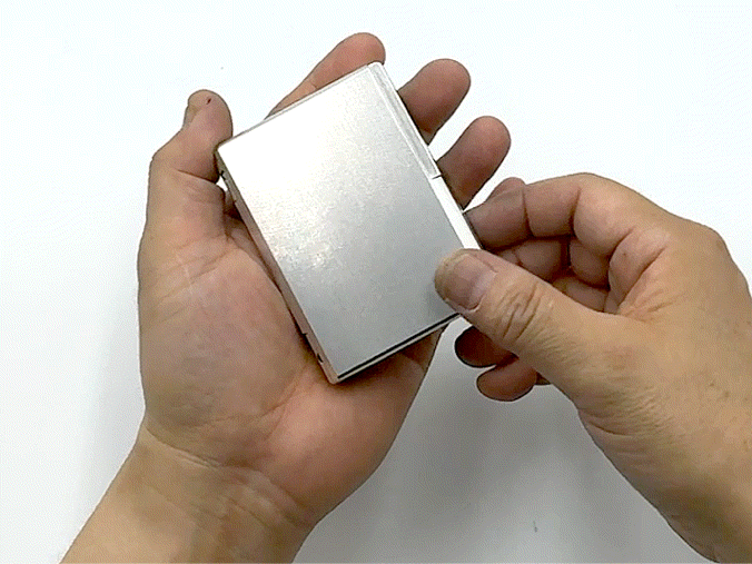 FACTRONのメタルウォレットで最小のカードサイズ! 手の平よりも小さいコンパクトさです。