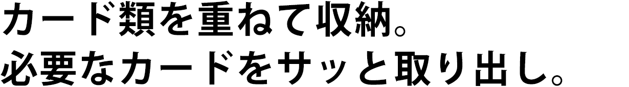お札やレシートも。 紙幣スペースには、三つ折りのお札や折りたたんだレシートが入ります。 カードのみ収納する場合は、レシート入れに。