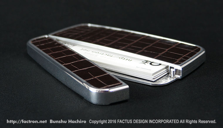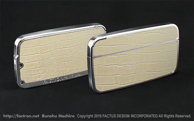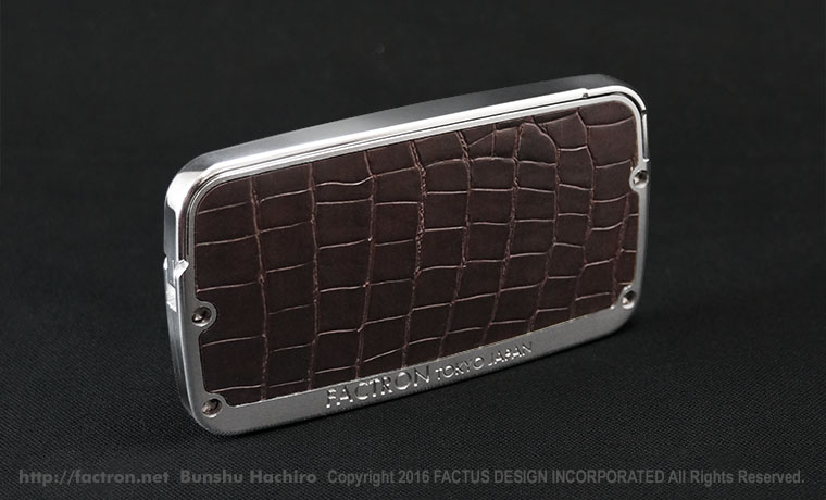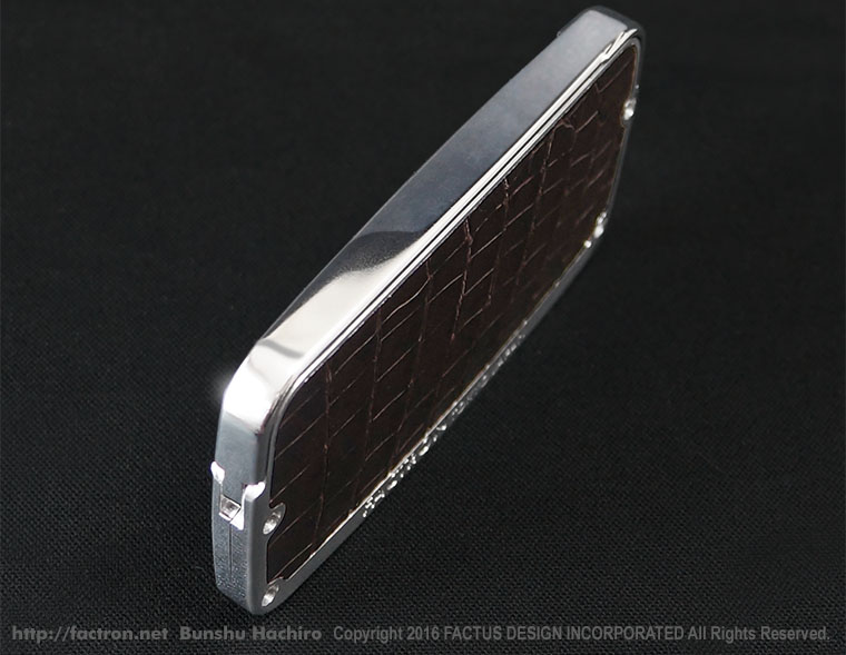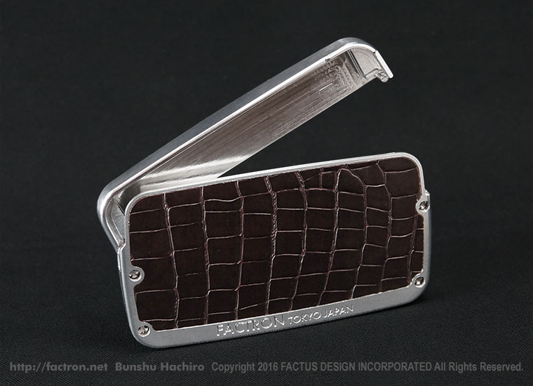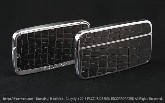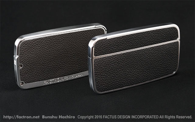 シャイニーシルバーの本体に、落ち着いたツヤのブラックシュリンクレザーを貼り合わせました。 ご注文後オーダーメイドで製作します。 ご注文前にページ最下部の注意書きをよくお読みください。 素材:ジュラルミンA2017 ・ブラックシュリンクレザー(牛革) 同梱品:取扱説明書