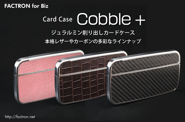 カードケース Cobbele+ コベルプラス 素材は航空機等でも使用されるジュラルミンA2017(アルミ合金)を使用。 なめらかな「玉石」のように、時間をかけて削り出し、 金属の光沢感を最大限に引き出すように、ひとつひとつ手仕上げで磨き上げ、 高級レザーやリアルカーボンファイバーを丁寧に貼り合わせました。。 薄いアルミ板を曲げて作られた製品では表現しにくい、 ゆるやかな三次曲面の表面形状と肉厚の強弱による無垢感です。