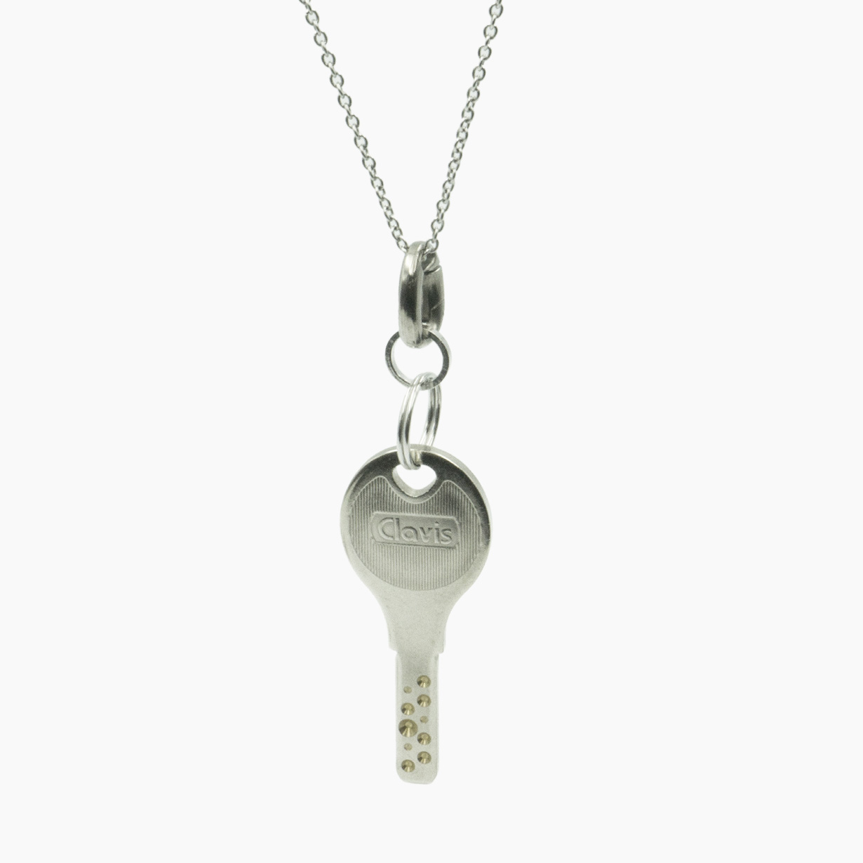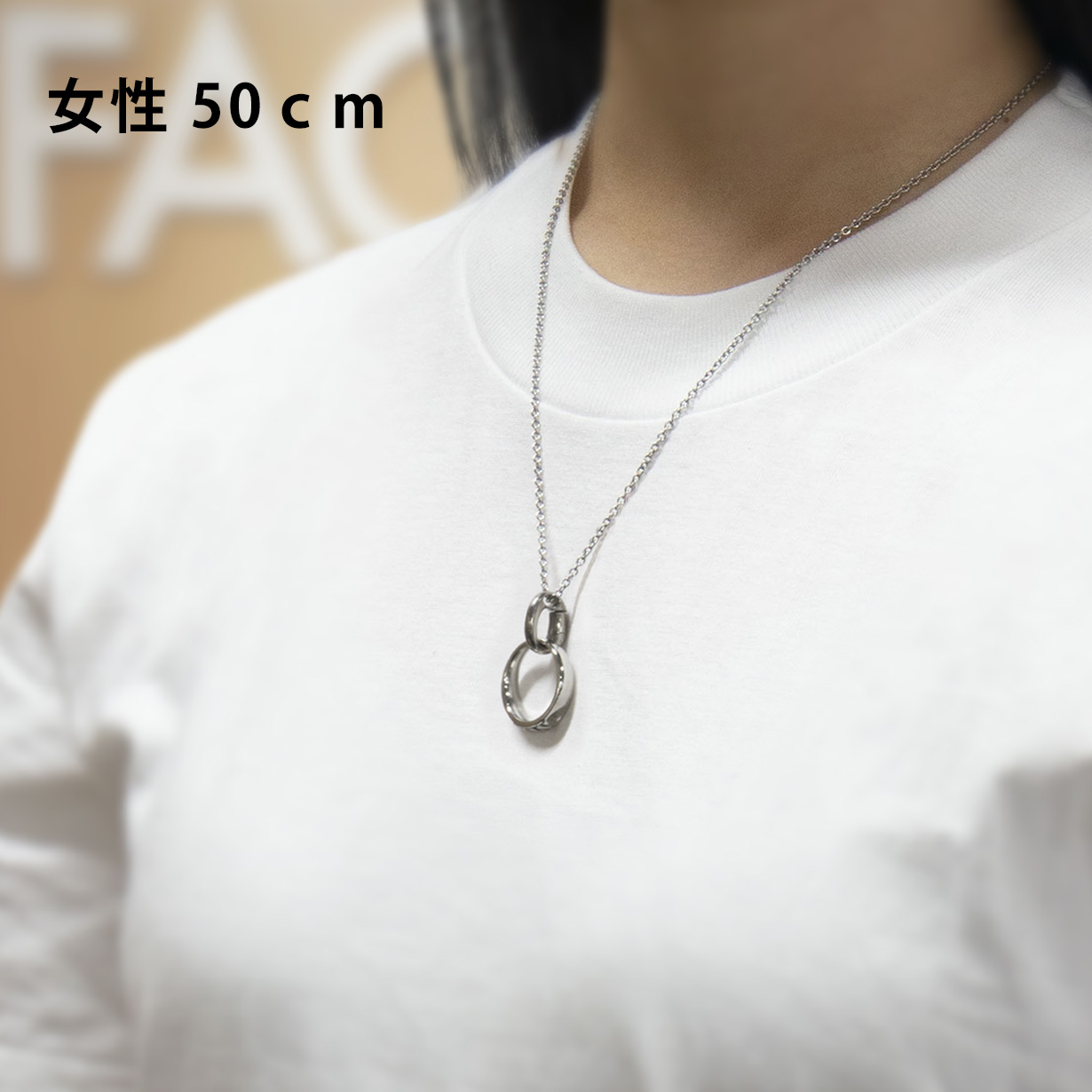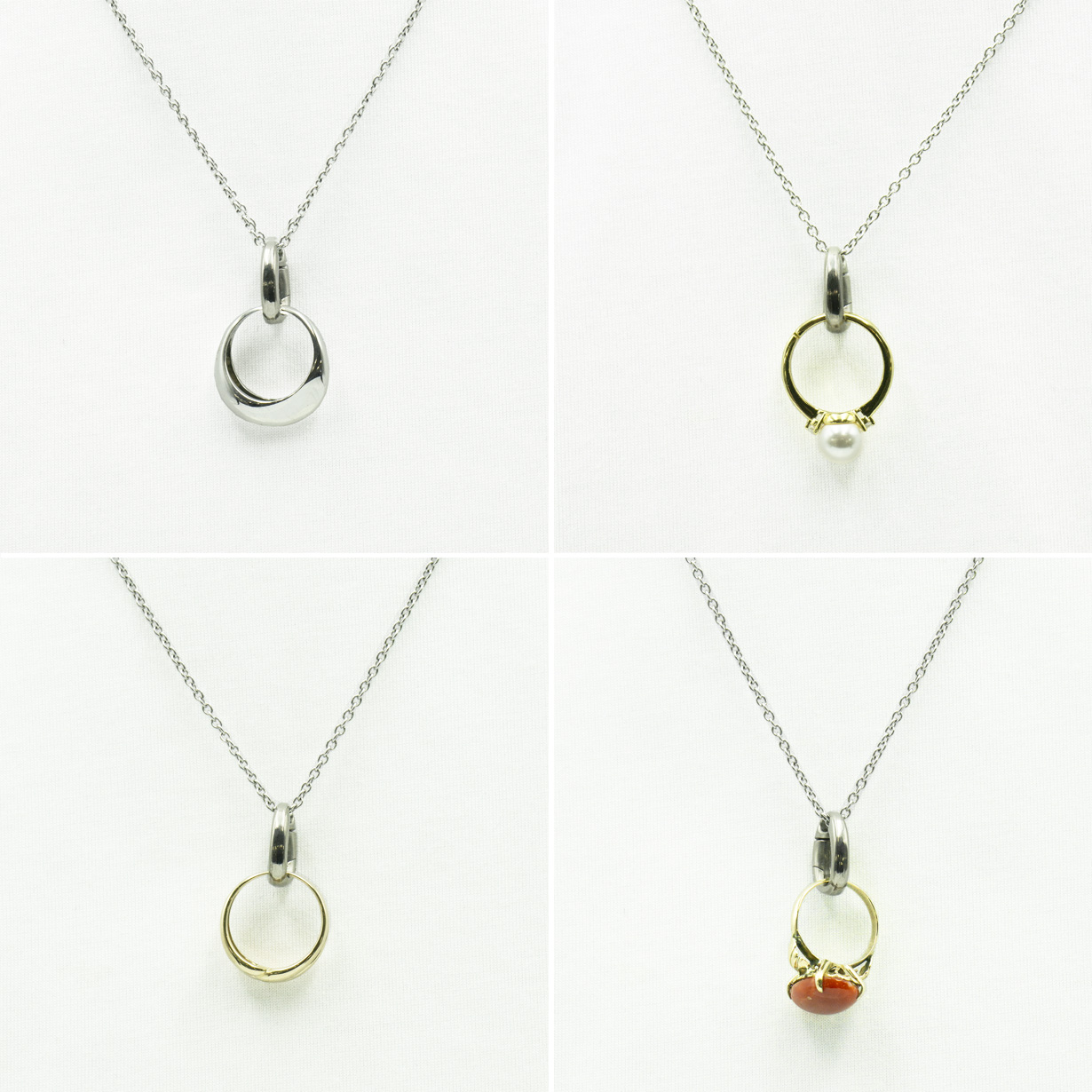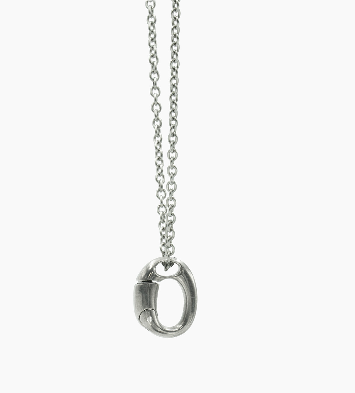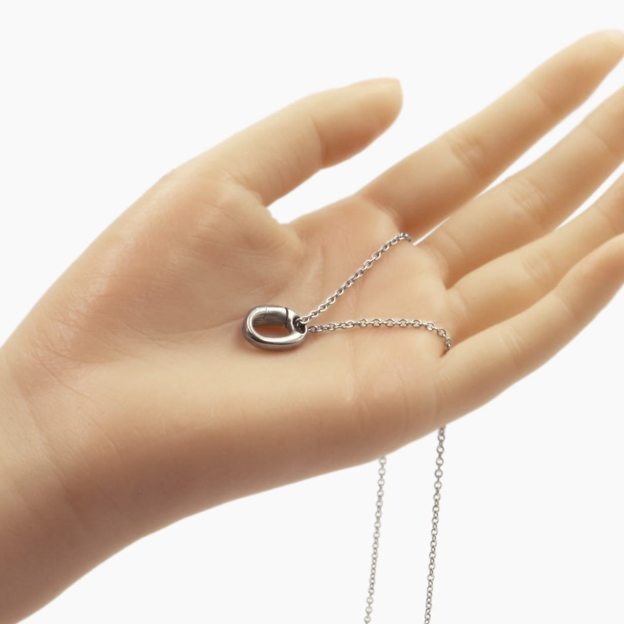 リングの付け外しで首からチェーンを外さなくてOK。 首にかけたままで手軽にカチッとリングを着脱。 付けるのも外すのもワンタッチで、しっかりとリングをホールドします。