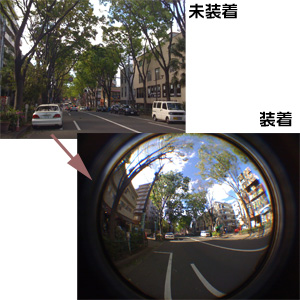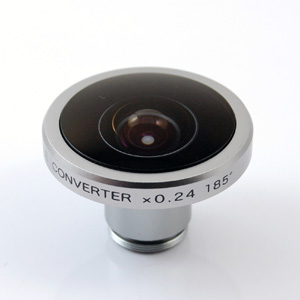 このレンズはカメラ付き携帯電話用として設計された受光角185°の円形魚眼レンズです。半球(180°)の視界撮影を可能にし、解像度をより追及することによって、魚眼レンズでの撮影がさらに楽しいものになりました。また約2cmの近接撮影が可能で、半球の視界撮影プラス近接撮影は通常のクローズアップ撮影とも異なり、一種独特な写真を楽しめます。 ●このレンズには魚眼特有のゆがみを補正する画像処理ソフト(CD-ROM)が同梱されております