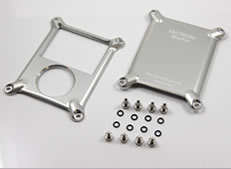 ジュラルミンの無垢材から削り出された2枚のプレートが作り出す、微妙な曲面の反射が美しいフォルムは、加工の過程で1枚づつ何度も方向を変えて切削して生まれたものです。