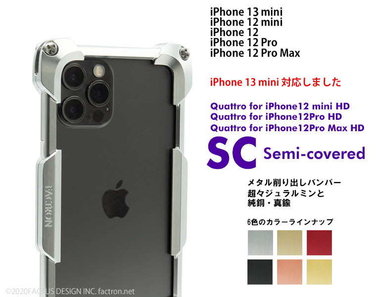 Quattro for iPhone12 mini HD SC Quattro for iPhone12Pro HD SC Quattro for iPhone12Pro Max HD SC iPhone 13 mini iPhone 12 mini iPhone 12Pro & iPhone 12 iPhone 12Pro Max ジュラルミン削り出しバンパー ※iPhone 12 mini用 は iPhone 13 mini でご使用いただけます MADE in TOKYO JAPAN
